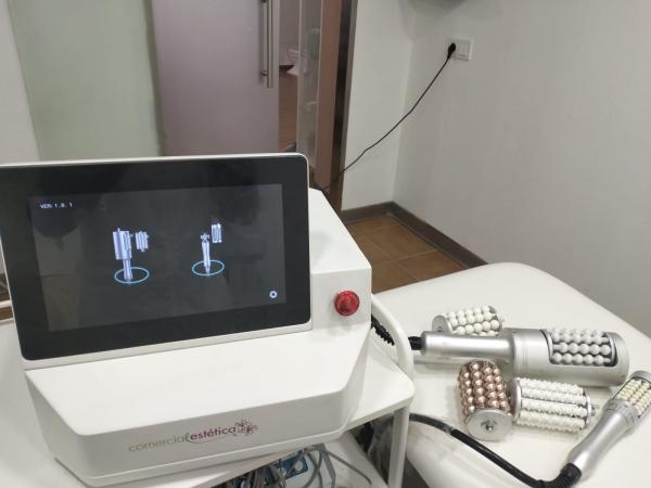 Máquina para tratamientos corporales, con 3 cabezales. Para celulitis, piel de naranja, retención de líquidos, grasa localizada, dolor muscular.