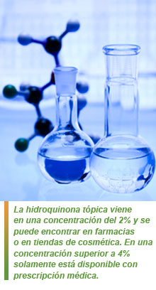 La hidroquinona tópica viene en una concentración del 2% y se puede encontrar en farmacias o en tiendas de cosmética. En una concentración superior a 4% solamente está disponible con prescripción médica.