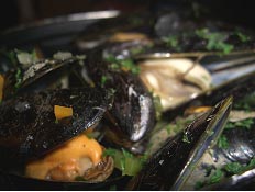 El Mejillón (Mytilus edulis) es un pequeño marisco de concha alargada y estriada, de un tono azulado más o menos oscuro. Se le conoce también con el nombre de mojojón, mocejón, ligerón o macillón. Se captura en su hábitat natural (mejillón de roca), o se obtiene de la mitilicultura o cría, bien en bateas o llanos. La cría en bateas consiste en colocar filas alineadas de estacas de madera. Este sistema es común en el Mediterráneo y las Rías Bajas gallegas y da lugar a mejillones de pequeño tamaño pero muy carnoso. España es un gran productor gracias a esta forma de cultivo. La cría en llano se practica en el mar del Norte.