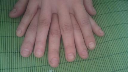 las tenia un poco mas largas al quitarselas, pero se partieron algunas y hubo que limar, la jodia se las volvio a morder al tiempo y volvimos a empezar el proceso (es una compi peluquera)