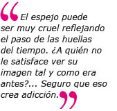 A.M.B.: El espejo puede ser muy cruel reflejando el paso de las huellas del tiempo. ¿A quién no le satisface ver su imagen tal y como era antes?... Seguro que eso crea adicción.