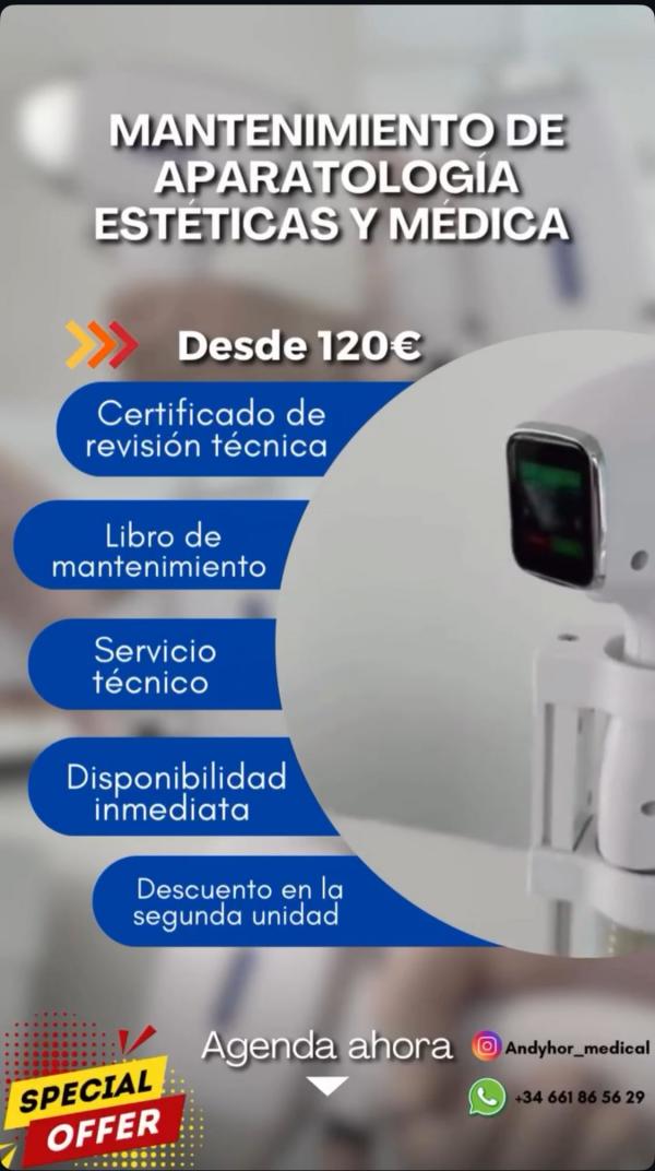 Incluye carrito , electrodos faciales y corporales , folletos y Roll Up. Doy formación.