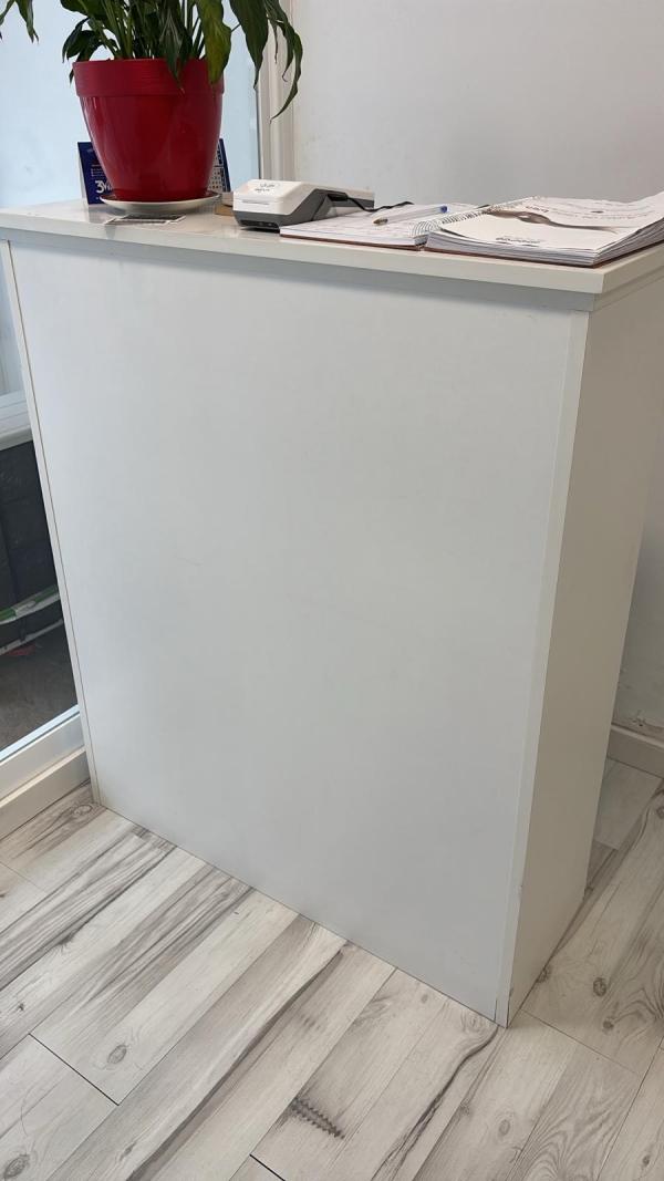 Vendo recepción para cualquier negocio, es grande y maciza de una pieza lavada en blanco, es en forma de L y mide 1.70m x 1.80m y la altura es 1.10m y el fondo son 0.50cm
