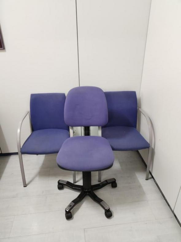 Principal y de pacientes- confidentes, en tela azul metalizado y brazos gris perla. Muy resistentes y bonitas. Nuevas. Precio: 35 €. Interesados: 695 13 50 13