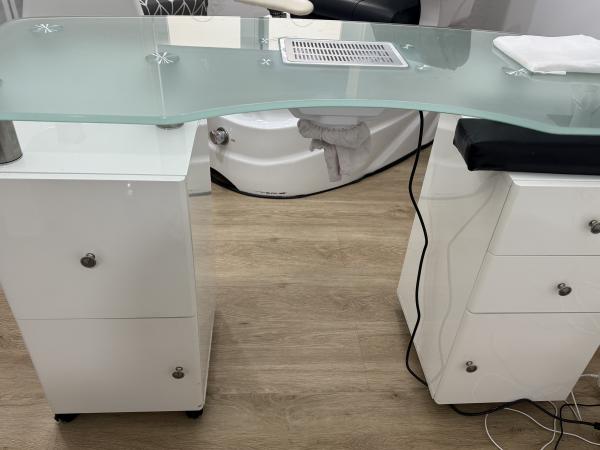 Se vende mesa de manicura con aspirador incorporado y muchas zonas de almacenaje. Está como nueva 500€
