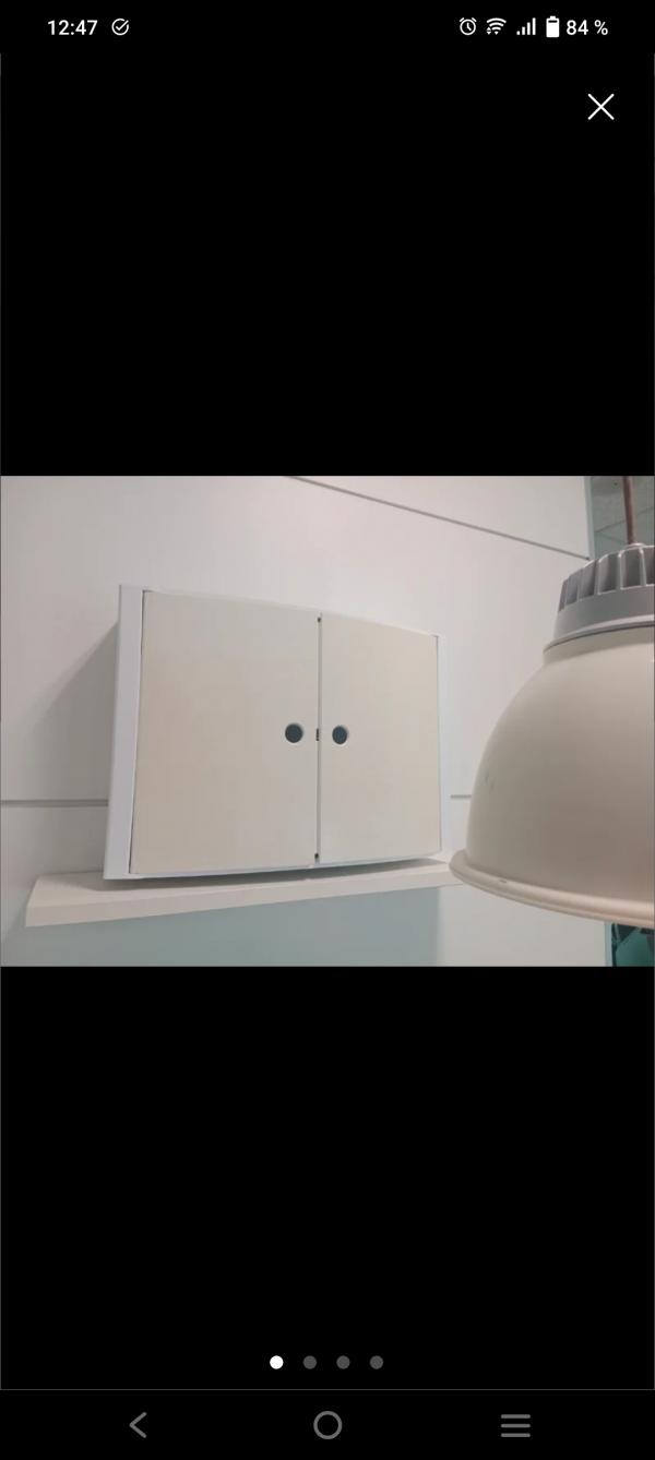 Mueble pequeño colgado, aunque se puede poner sin colgar, 2 puertas y 3 departamentos.