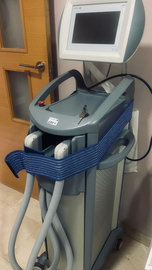 En Alicante: Equipo de criolipolisis para tratamientos de reducción de grasa localizada. Tiene dos placas, bandas elásticas y conector de cambio de agua. Es necesario el relleno del depósito. 5000€ Precio negociable.