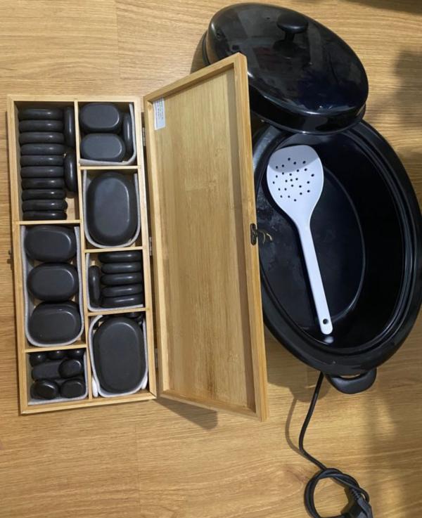 calentador y piedras de masaje