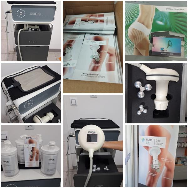Zionic en perfecto estado. Radiofrecuencia resistiva con masaje rotacional profundo.Incluye carro original, roll up, manual de instrucciones con USB, folletos, 3 cremas de tratamiento para empezar a funcionar.Posibilidad de probar. 8000€