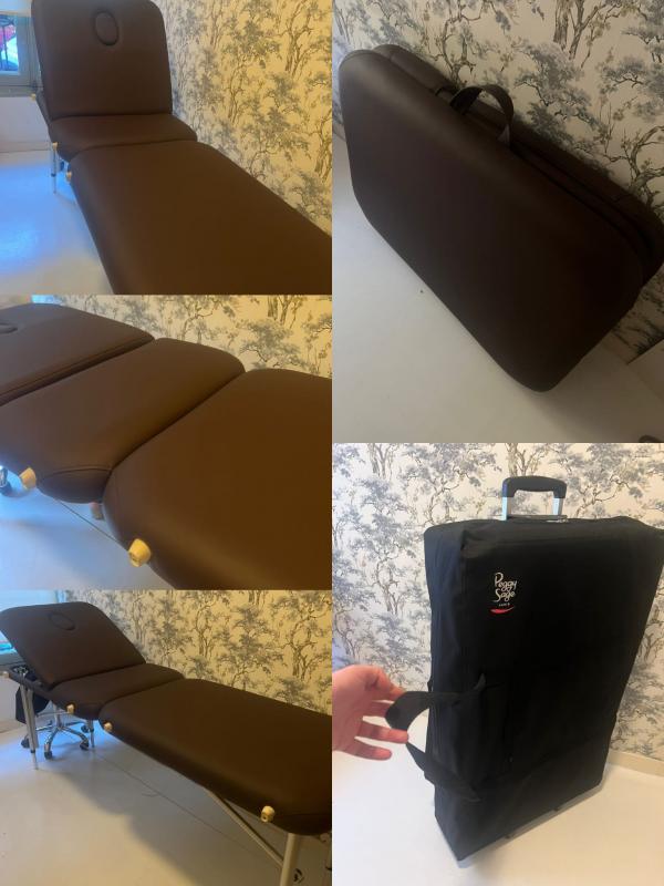 Vendo camilla plegable con maleta de ruedas, marca Peggy Sagge. Polipiel chocolate