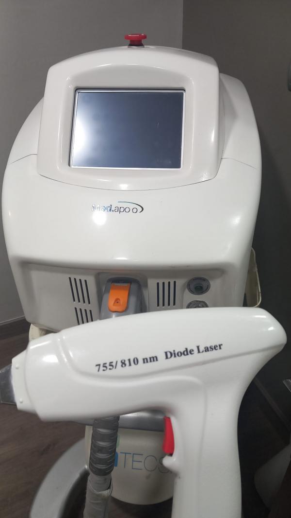 Equipo depilación permanente profesional por láser de diodo. Dispositivo disparador cambiado recientemente. En perfecto estado y recien revisado. Tratamiento muy eficaz e indoloro. 2.500 €