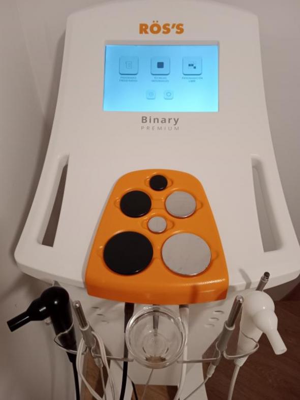 Vendo equipo estetica seminuevo radiofrecuencia electroestimulacion Binary Premium Rös´s al 60% de descuento. Incluye los electrodos, un pack de cremas y brazaletes manos libres. Está en perfecto estado y el envío está incluido.