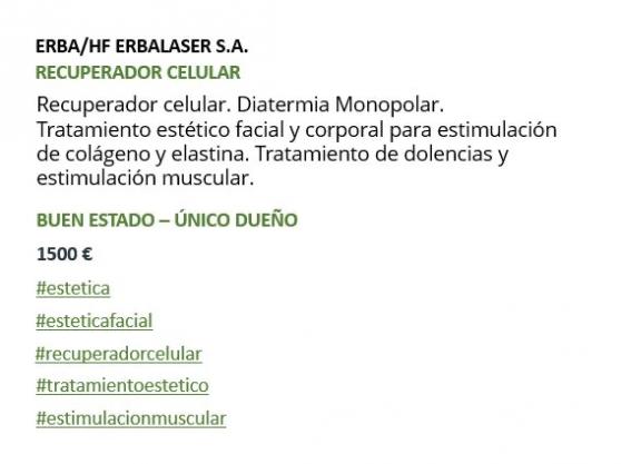 Recuperador celular. Diatermia monopolar. Tratamiento estético facial y corporal para estimulación de colágeno y elastina. Buen estado