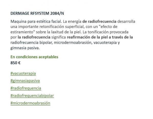 Se vende radiofrecuencia facial y corporal . Más cavitacion corporal. Sólo atiendo llamadas tl 625 175 064 Un saludo