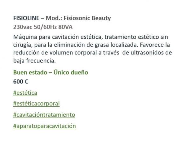 Maquina de cavitación y radiofrecuencia corporal y facial. Está como nueva, tiene poco uso. Nos ha dado muy buenos resultados.