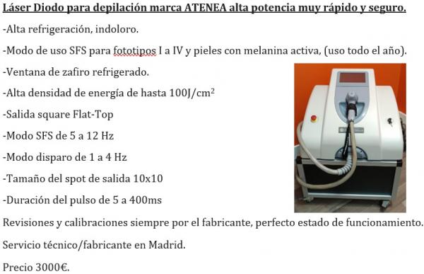 Vendo láser depilación con muy poco uso. Costo 15.000 euros. Lo vendo por 5000