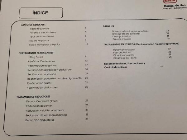 Tratar celulitis, flacidez y remodelación corporal. 4 técnicas en un solo aparato: luz infrarroja, vacumterapia, radiofrecuencia bipolar, masaje con rodillos. Incluye manípulo facial. Regalo garrafa velaspray.
