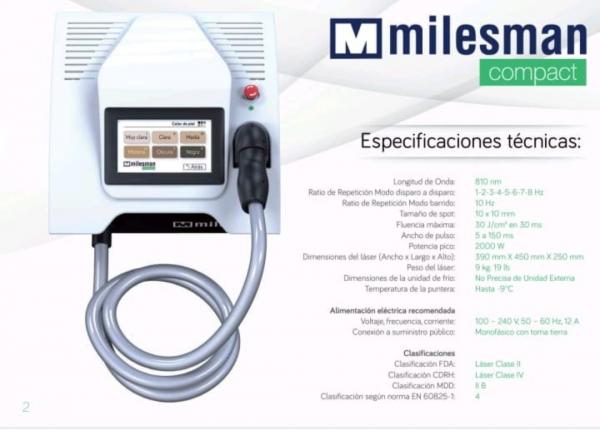 Alquiler diario/semanal equipo depilación laser Milesman, desde 180€. Ligero y compacto, efectividad garantizada.