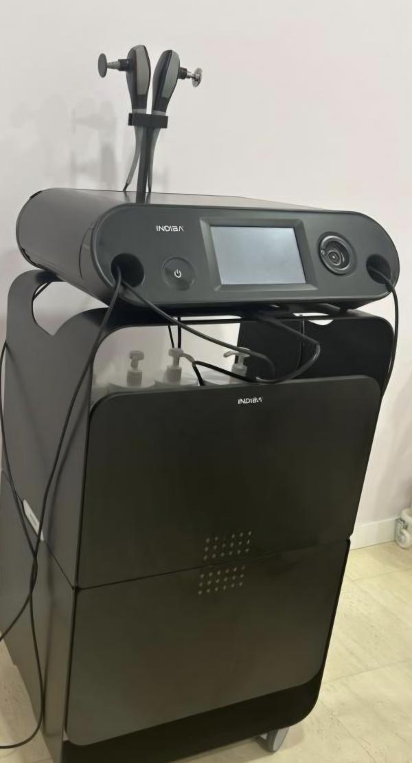 Equipo de radiofrecuencia EMOVEX con tecnología monopolar (capacitiva y resistiva) y bipolar. Diseñado para tratamientos estéticos, facial y corporal.