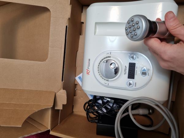 Coreana RF con sonoforesis para mejorar la entrada de producto en la piel o reafirmar. Se puede transportar fácilmente. Su coste es de 1200€( iva), apenas utilizada. Puedo hacer factura.