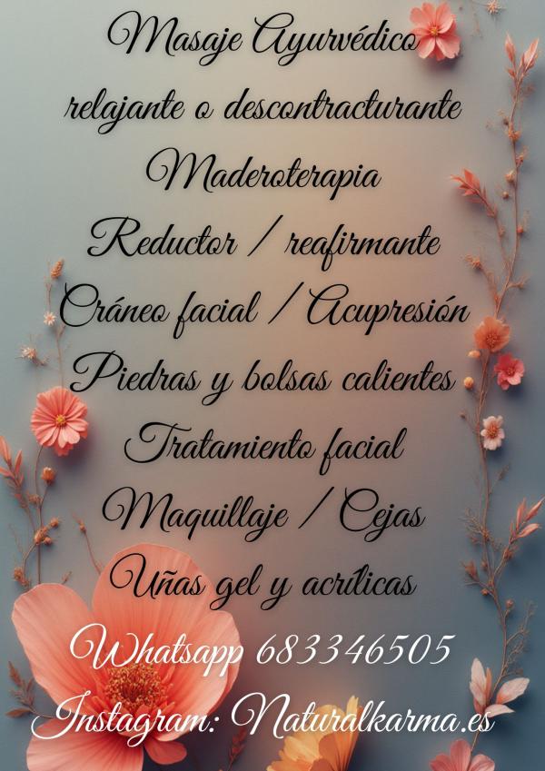 Masajes técnica Ayurveda. Estilismo, maquillaje dia/noche, fiesta y novias. Peinados, cejas, uñas gel y acrílicas. Citas a concertar, Sant Feliu de Codines. Info: NaturalKarma