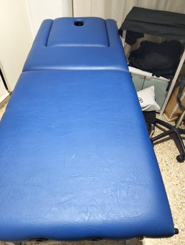 Camilla de piel patas de aluminio marca ecopostural se levanta respaldo 250€