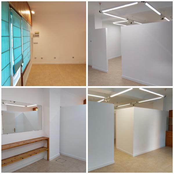 Centro Colindres, con 3 cabinas divididas con Pladur, 1 aseo, mueble expositor, puertas blancas, pintado, con persiana de seguridad.Ideal para fisioterapia, cabina estética, peluquería, estudio de tatuajes, luz,agua..