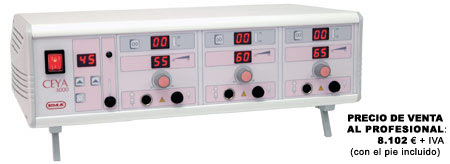 de aplicación: facial, rictus y corporal - Avisador acústico al aproximarse el final del tratamiento - 2 ventanas digitales de control para tiempo e intensidad - Desconexión automática al finalizar la sesión - 3 salidas diferentes |