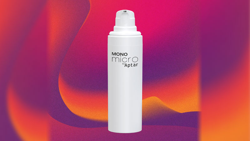 En el segmento airless, Aptar presentó una versión monomaterial de su best-seller airless Micro 30 ml. Fabricado íntegramente en polietileno (PE), Mono Micro es fácilmente reciclable. Para un rendimiento aún mejor en las plantas de reciclaje, Aptar se asoció con Autajon Labels para crear una etiqueta 100% PE que coincida a la perfección. La serie Mono se ampliará en 2024 con versiones de 50 ml y 75 ml de Mezzo.