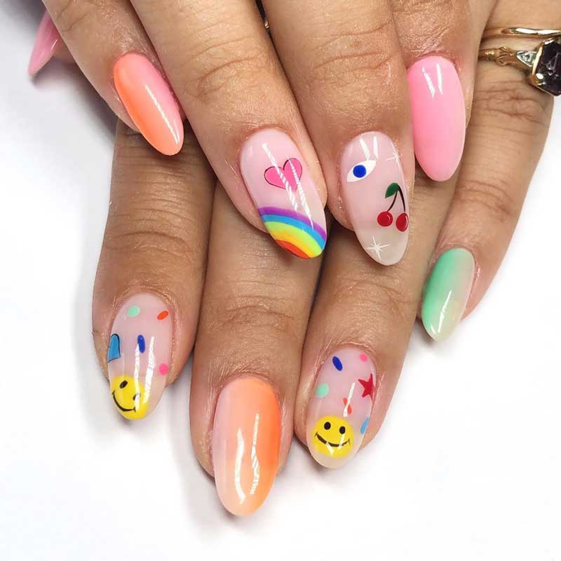 Ya sea una manicura con forma de arco iris, o con los colores de este fenómeno óptico de la naturaleza, o con los colores con los que queramos interpretar nuestro propio arco iris