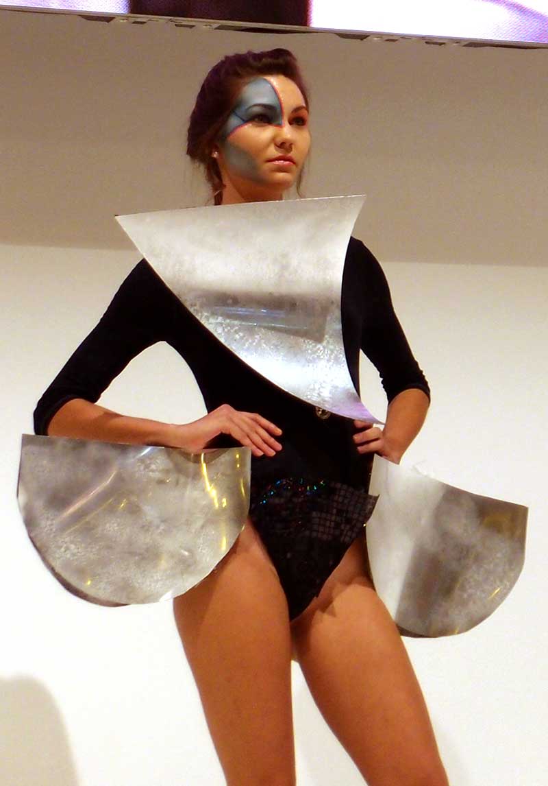 Bajo el título El Arte del Maquillaje, tanto profesores como alumnos del centro han creado una vistosa puesta en escena con elementos en maquillaje, peluquería y escenografía del todo futuristas