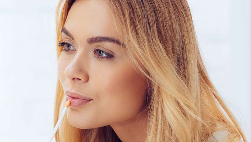 Con respecto a los labios, esta tendencia abandona los rojos fuertes para pasar a los colores más neutros, rosas, naranjas... y se aplica la barra en el contorno de los labios. En los ojos, ya hemos apuntado anteriormente que con el nontouring no se aplican colores oscuros, sí quizás algo de sombra que pueda resaltar esta parte del rostro. Las cejas se dejan lo más naturales posibles, empleando un pequeño cepillo para darles forma, pero no mucho más.