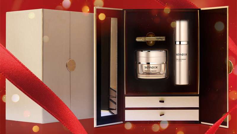 Skeyndor quiere celebrar la belleza esta Navidad y propone siete elegantes cofres para regalar que encierran las mejores gamas de esta prestigiosa marca.