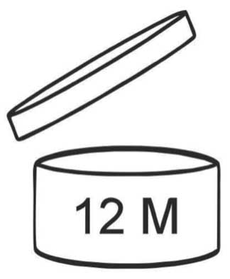 2. Caducidad PAO (Period After Opening) (Siempre Obligatoria excepto si el producto tiene un fecha de caducidad inferior a 30 meses y se especifica). Es un grafismo indicador del período de vida útil de un producto desde su apertura. Se representa con un recipiente redondo abierto y un número con una M, que hace referencia a los meses que han de pasar hasta que se caduque. Según el reglamento: Art. 19.1 : Fecha de caducidad; Reloj: caducidad < 30 meses; PAO: caducidad> 30 meses.