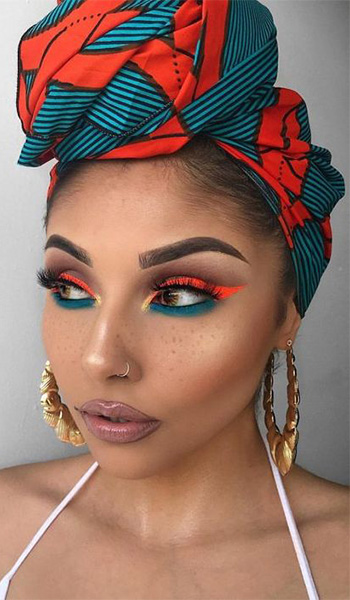 Es más, el 'cat eye' grueso y largo en forma de flecha mezclado con sombras coloridas logra el efecto de una autentica mirada felina. Y para completar el efecto perfecto, nada mejor que optar por unas pestañas XXL, extra largas.