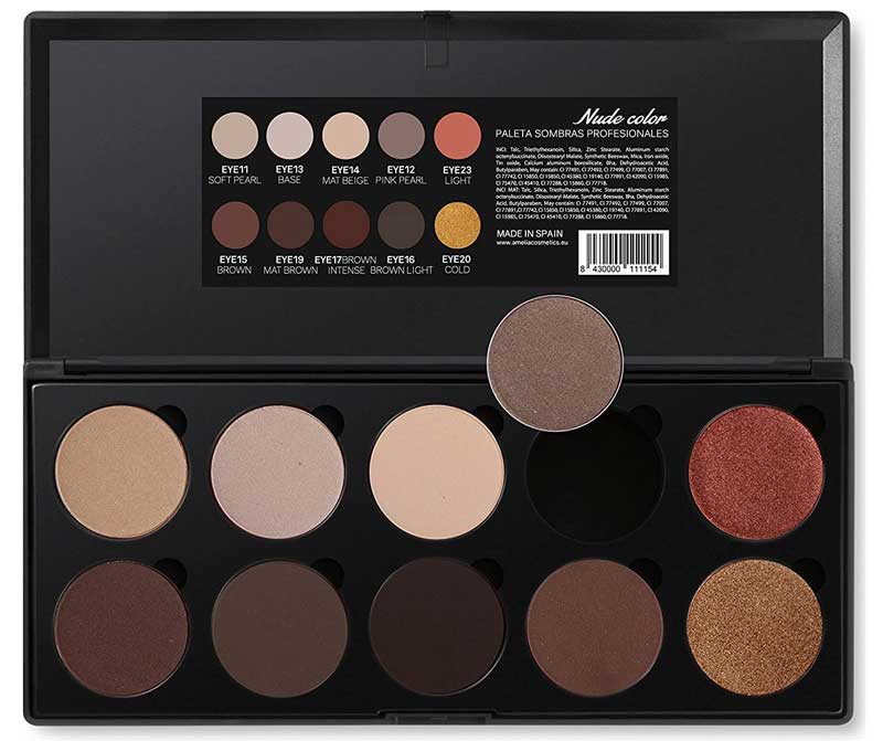 - Paleta de sombras Look Nude, de Amelia Cosmetics. Una colección de 10 sombras de ojos en colores intensos, con alta pigmentación, larga duración y muy fácil de difuminar.