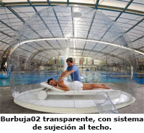 -BurbujaO2 transparente con sistema de sujeción al techo.