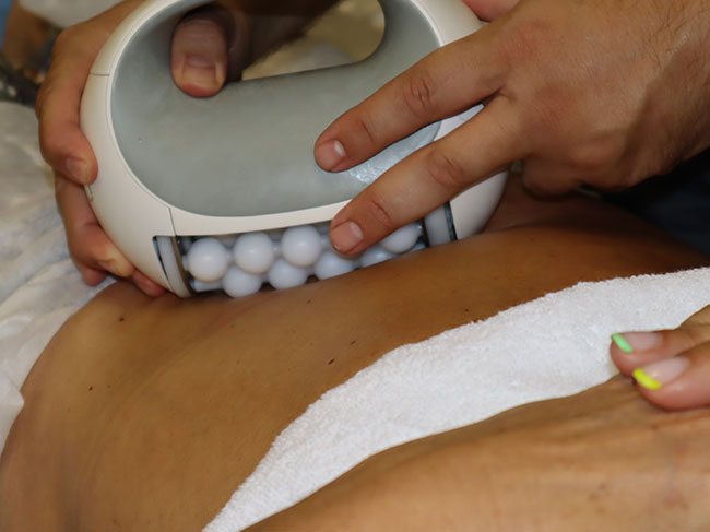 Esta actúa en tres niveles, la primera capa es la epidermis la cual favorece a la microcirculación aumentando el aporte de oxígeno a todos los tejidos, siguiendo en la penetración del panículo adiposo que esta ayuda a la movilización de los depósitos grasos del organismo favoreciendo un efecto reductor hasta llegar a la musculatura en el que se tonifica y reafirma las fibras musculares para producir un efecto analgésico y relajante.