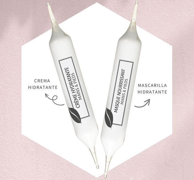 Por último, la esteticista aplicará la ampolla que contiene la Mascarilla Nutritiva. Para ello, calentará previamente el vial y lo extenderá sobre las manos y pies de la clienta. Para intensificar la acción de sus principios activos (aceite vegetal de argán, ácido hialurónico de origen vegetal, vitamina E...), se envolverá la piel en film y se dejará reposar unos 10 minutos.