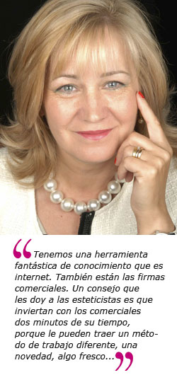 M.P.: Tenemos una herramienta fantástica de conocimiento que es internet. También están las firmas comerciales, que nos hacen un trabajo sensacional cuando nos vienen a visitar. Un consejo que les doy a las esteticistas es que inviertan con los comerciales dos minutos de su tiempo, no que pierdan dos minutos, porque le pueden traer un método de trabajo diferente, una novedad, algo fresco... estamos encerradas en nuestro centro y si no atendemos a los comerciales no conoceremos las novedades que ofrece el mercado. Después ya decidiremos si compramos o no, pero es básico conocer el mercado.