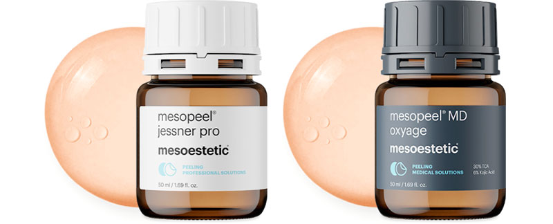- mesopeel®: gama de peelings químicos de uso estético que permiten una acción progresiva, controlada y segura. Su aplicación en cabina mejora visiblemente la textura, la luminosidad y la uniformidad desde la primera sesión.