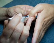 Se aplica una base en la uña que la protege del esmalte para no dañarla. Se deja secar unos minutos.