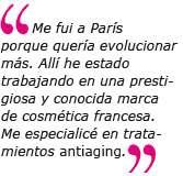 F.V.: Me fui a París porque quería evolucionar más. Allí he estado trabajando en una prestigiosa y conocida marca de cosmética francesa. Me especialicé en tratamientos antiaging.