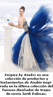El pasado 23 de septiembre Anubis presentó en el Hotel-Monumento Mas Passamaner (Selva del Camp, Tarragona), un concepto pionero en tratamientos de belleza: Enigma by Anubis. Se trata de la sinérgica unión entre la belleza profesional y la moda. En este caso, moda nupcial, ya que Enigma by Anubis es una colección de productos y tratamientos de Anubis inspirada en la última colección del famoso diseñador de trajes de novia Jordi Dalmau.