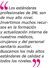 G.P-S.: Nos diferenciamos en la gran calidad y actualidad de nuestro equipamiento tecnológico, basado siempre en la última tecnología y empleado por profesionales de la medicina en continua formación y súper especialización. Los estándares profesionales de IML son de muy alto nivel. Invertimos muchos recursos en la formación y actualización interna de nuestros médicos, cirujanos y del personal sanitario auxiliar. Buscamos los más altos estándares de calidad a todos los niveles, desde que nuestro paciente accede a nuestras instalaciones.