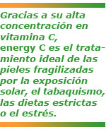 Gracias a su alta concentración en vitamina C, energy C es el tratamiento ideal de las pieles fragilizadas por la exposición solar, el tabaquismo, las dietas estrictas o el estrés.