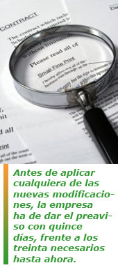 Quince días de preaviso, frente a los treinta necesarios hasta ahora.
