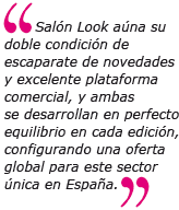 M.P.: Salón Look aúna su doble condición de escaparate de novedades y excelente plataforma comercial, y ambas se desarrollan en perfecto equilibrio en cada edición, configurando una oferta global para este sector única en España.