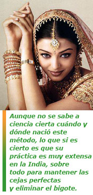 Para algunos nació en la antigua Persia, otros lo atribuyen a la cultura otomana, y para darle más exotismo y popularidad también se asigna su inicio a las milenarias prácticas chinas o hindúes. Lo único que podemos saber a ciencia cierta es que su práctica es muy extensa en la India, sobre todo para mantener las cejas perfectas y eliminar el bigote.