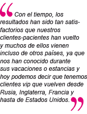 C.E.: En Lloret de Mar y en los distintos Spa que hemos dirigido, tanto en Lloret como en Tossa de Mar nos conocen por nuestra exigencia en el trabajo, la profesionalidad, y eso es lo que desde siempre hemos ofrecido y de la forma que nos han conocido. Con el tiempo, los resultados han sido tan satisfactorios que nuestros clientes-pacientes han vuelto y muchos de ellos vienen incluso de otros países, ya que nos han conocido durante sus vacaciones o estancias y hoy podemos decir que tenemos clientes vip que vuelven desde Rusia, Inglaterra, Francia y hasta de Estados Unidos.